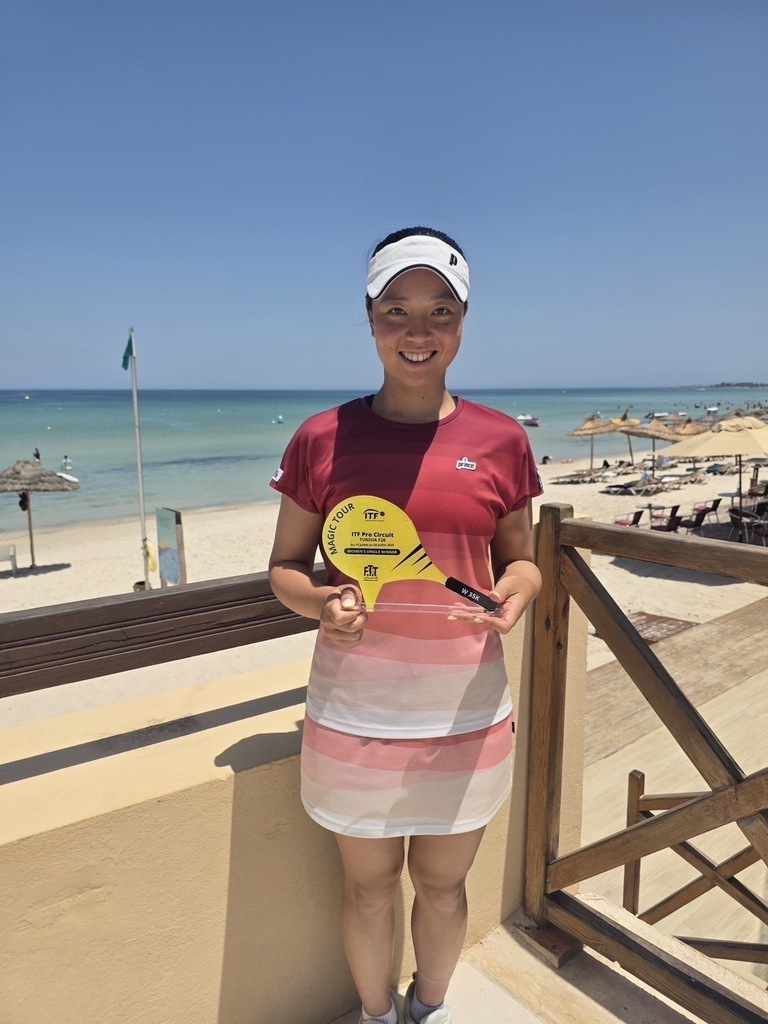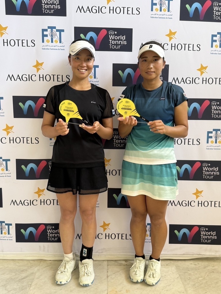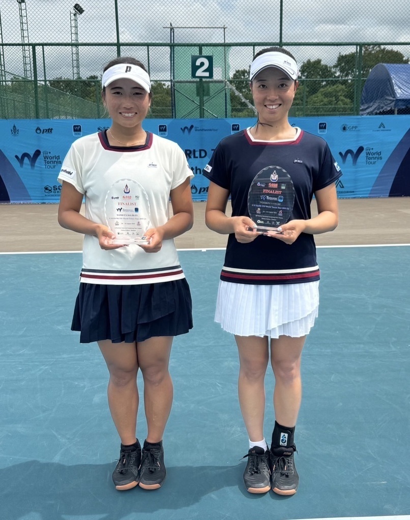 気温 40 度ある中で、3 時間を超える試合もありましたが、1 週目はシングルス準優勝、2 週目はシングルス優勝、ダブルスは松田美咲さん (エームサービス) と準優勝することができました。