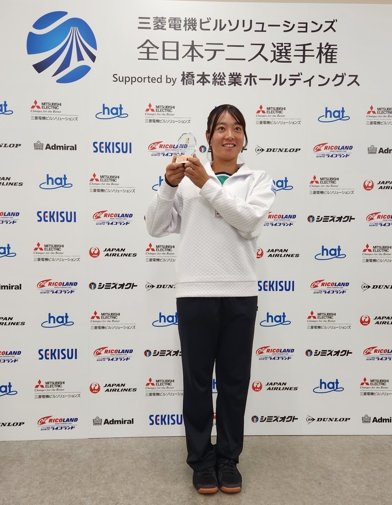 3 年ぶりに出場した全日本テニス選手権は、国際大会とは全く違う緊張感があります。応援してくださった皆様が力となり、最終日まで戦い抜くことができました。結果は過去最高のシングルスは 3 位、松田美咲選手とのダブルスは準優勝でした。